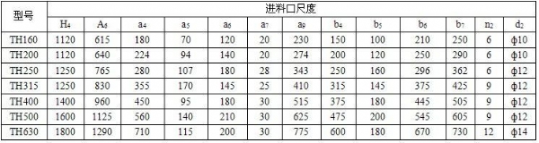 五、TH型斗式提升機(jī)主要尺寸: